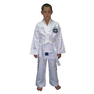 Кимоно (добок) для тхэквондо Эквоис ITF 1031 Для версии ITF Плотность 200 г/м2 (8 унц.) Состав ткани: 50% хлопок, 50% полиэстер. Ткань: саржа, супер отбелка Символика вышита на груди и штанах. На брюках вышивка - ITF None