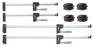 Описание: Классические F-образные струбцины с направляющей из высококачественной профилированной стали с насечками для фиксации подвижной части зажима. Стальные губки расположены в защитных пластиковых корпусах. Усилие сжатия – до 2500 кН. Спецификация: Артикул ОписаниеРазмеры GR39181 KBC/24 Корпусная струбцина тип «К» 600 мм GR39183 KBC/40 Корпусная струбцина тип «К» 1000 мм GR39193 KBC/2440/PCB/ST Набор корпусных струбцин: 2хKBC/24 + 2xKBC/40 + набор блоков 2 по 600 мм 2 по 1000... None