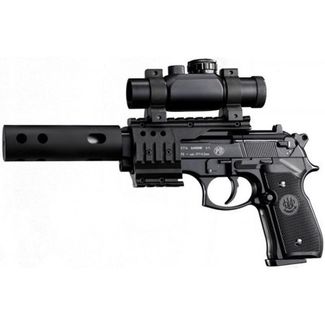 Пневматический пистолет Umarex Beretta 92 FS (глушитель, коллиматор, черн. с черн. пласт. накладками)