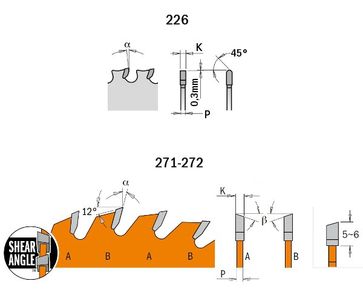 Применение (серия 271–272): продольное и поперечное пиление; тонкий пропил уменьшает количество отходов. Оборудование (серия 271–272): ручная циркулярная пила; аккумуляторная пила. Материал (серия 271–272): мягкая или твёрдая древесина, фанера. Применение (серия 226): поперечное пиление различных материалов. Оборудование (серия 226): ручная циркулярная пила; аккумуляторная пила. Материал (серия 226): черные металлы, конструкционная сталь. Внимание! В... None
