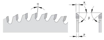 Применение: раскрой панелей с двусторонним ламинированным покрытием; без использования подрезной пилы. Оборудование: горизонтальный или вертикальный форматно-раскроечный станок, ручная циркулярная пила. Материал: панели с одно- или двусторонним ламинированным покрытием или облицованные шпоном. Технические параметры твердосплавных зубьев: - высота зуба, мм: 8 - хромосодержащий сплав, марка: KCR06 - степень твёрдости (HV10): 1,950 - сопротивление поперечному разрыву (N/мм2): 2,300 D B... None