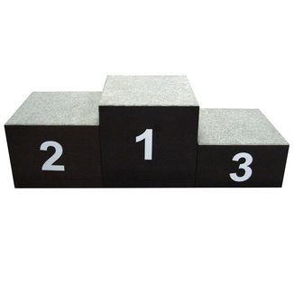 Состоит из трех отдельно стоящих кубов, с нанесенными цифрами-аппликацией призовых мест. Изготовлен из фанеры 15мм.