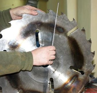 При перегреве полотна в процессе пиления, полотно дисковой пилы деформируется: на пиле появляются «шишки» и пила уходит «в тарелку».Процесс рихтовки позволяет вернуть пиле правильную геометрию полотна. Стабильная работа и "живучесть" дисковой пилы невозможны без устранения дефектов её геометрии, таких как тарельчатость, "пузыри", s-образность и др., которые возникают по разным причинам, но в основном из-за низкой... None