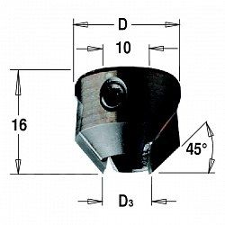 Съёмный зенкер устанавливаемый на спиральную часть сверла. Используется только со свёрлами: 310-311-362-313-314-366 HW Технические особенности: • корпус из высокопрочной стали • 2 прецизионные напайные твёрдосплавные режущие грани HW [Z2] • максимально эффективное крепление зенкера на хвостовик сверла при помощи винта. Применение: для сверления и зенкерования отверстий в цельной древесине, её производных (ДСП, OSB, МДФ), пластиках и ламинированных материалах.D вр. D3 Артикул 20 RH 5... None