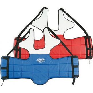 Жилет для таеквондоGreenHill Gents, TSG-6030 Искусственнаякожа. Наполнитель- пенополиэтилен. Креплениена нейлоновых ремнях. Цвет:двухсторонний - синий и красный. None