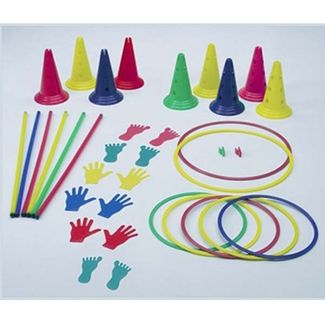 Спортивно-игровой набор №3 (36 элем.), Italveneta Состав: Обруч плоский (65см) - 2 шт, Обруч плоский (50см) - 5 шт, Конус (30см, 3 отверстия) - 4 шт, Конус (30см, 12 отверстий) - 5 шт, Палка (110см) - 6 шт, Клипсы «палка-кольцо» - 2 шт, Следочки «Рука» - 6 шт, Следочки «Нога» - 6 шт. None
