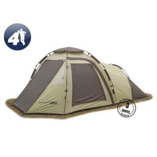 Кемпинговая палатка Maverick FAMILY COMFORT 3 спальных места. Ультрабыстрая установка – 3 минуты Высокая ветровая устойчивост. Большой и высокий тамбур. 3 входа, оборудованных москитными сетками; Стойки под козырек. Цвет: серый/бежевый Вес: 17кг None