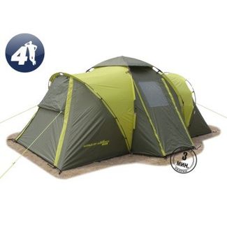 Кемпинговая палатка Maverick SLIDER 4 спальных места; Ультрабыстрая установка – 3 минуты Высокая ветровая устойчивость; Большой и высокий тамбур; 2 входа, оборудованных москитными сетками; 2 входа в палаточное отделение Стойки под козырек; Цвет: зеленый/горчичный Вес: 11кг None