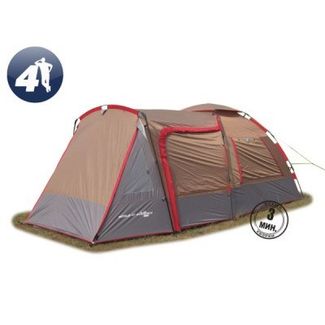 Кемпинговая палатка Maverick ULTRA 4 спальных места; Ультрабыстрая установка – 3 минуты Высокая ветровая устойчивость; Большой и высокий тамбур; входа, оборудованных москитными сетками; тойки под козырек. Цвет: кирпичный/серый Вес: 17 кг None