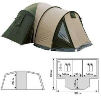 Палатка 4-х местная BERGEN SPORT YOSEMITE Характеристики: 4-х местная - двухслойная - два входных проема - два боковых окна для лучшей вентиляции - вход в передней части палатки увеличенных размеров - два спальных отсека + жилой отсек посередине - зажимная система крепежа - вес: 14,00 кг - проклеенные швы - сумка и колышки входят в комплект. размер: 210 + 180 х 140 + 100 + 140 х 200 см внешний тент: полиэстер 2000 мм/в ст. внутренний тент: «дышащий» полиэстер пол: армированный полиэтилен каркас: трубки, стекловолокно. None