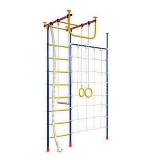 Cпортивно-игровой комплекс для дома Самсон 22 Включает: гимнастическую стенку с металлическими перекладинами.Навесное оборудование: канат, кольца, трапеция, турник, стойка с канатной сеткой.Занимаемая площадь: 0,6 х 1,7 м2.Высота: от 2,4 м до 2,9 м.Суммарная нагрузка: до 180 кг (при испытаниях давалась нагрузка 250кг).Общий вес: 28,1 кг. None