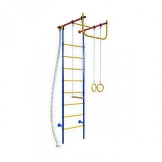 Cпортивно-игровой комплекс для дома Самсон 5 Включает: гимнастическую стенку с металлическими перекладинами.Навесное оборудование: канат, кольца, трапеция, турник.Занимаемая площадь: 0,6 х 0,6 м2.Высота: 2,4 м.Суммарная нагрузка: до 150 кг (при испытаниях давалась нагрузка 220кг).Общий вес: 19,2 кг. None