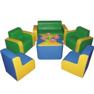Цветик-семицветик,РД Диван, 4 кресла, столик. Модульная мебель из поролона для ясельноговозраста None