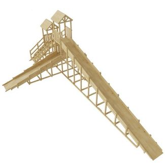 Детская горка Зима, Самсон Размер горки (ширина х длина х высота): 8,5 х 15,1 х 5,6 мВес: 2000 кгСкат (длина): 11,5 мМатериалы: карельская сосна, лак на водной основе. Каркас горки изготовлен из многослойного клееного соснового бруса, пол, ограждения из массива сосны. None