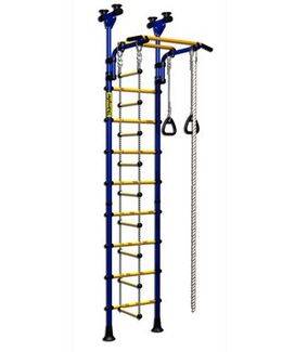 Детский спортивный комплекс ДСК Kampfer Strong kid ceilingОбрезиненные перекладины: ПВХ.Комплектация: турник подвижный, канат, кольца гимнастические, веревочная лестница.Регулируемая высота: от 2,315 м до 2,73 м.Размер: 0,74 х 0,86 м.Ширина шведской лестницы - 49 см.Конструкция: Г-образный враспор. None