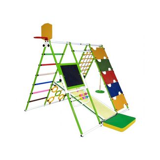 Детский спортивный комплекс Формула здоровья, Вершинка W Плюс Тип установки: напольный.Комплектация: тарзанка, сетка для лазания, панель с отверстиями, лесенки-кольца, горка, баскетбольное кольцо, мольберт со счетами, гимнастический мат.Высота комплекса: 1540 мм.Ширина комплекса: 1480 мм.Ширина в собранном состоянии: 160 мм.Длина комплекса: 1640 мм.Максимальная нагрузка на конструкцию: 100 кг. None