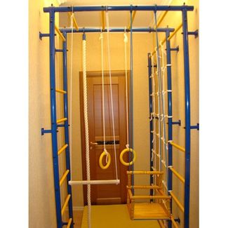 Детский спортивный комплекс Городок П-образный c сеткой с креплением к стене Комплектация: основа - металлическая шведская стенка П-образной формы. - сетка+стойка, гимнастические кольца, канат, трапеция.Крепление: к стене.Высота: 2.25 метра.Допустимая нагрузка: 250 кг. None