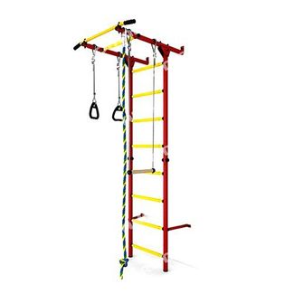 Комплектация: лестница гимнастическая, турник неподвижный, канат, кольца гимнастические, трапеция.