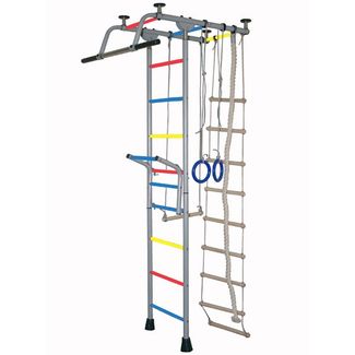Детский спортивный комплекс Крепыш Т-образный с навесным турником, перекладинами с ПВХ покрытием Комплектация: металлическая лестница, турник для узкого и широкого хвата с ПВХ покрытием, турник навесной, кольца гимнастические, лестница веревочная, трапеция, канат х/б, руководство по сборке.Крепление: враспор.Высота регулируемая: от 2,4 до 2,75 м.Габариты (проекция на пол): 1,0*1,1 м.Максимальная нагрузка на навесной турник: 60 кг.Максимальная нагрузка на комплекс: 100 кг. None