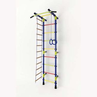 Детский спортивный комплекс Маугли 3 Крепление: к стене. Комплектация: турник, кольца гимнастические, верёвочная лестница. Возможные цвета: синий, зеленый, оранжевый, розовый, белый. Занимаемая площадь: 0.55х0.55 кв.м. Высота: 2.2 м. Суммарная нагрузка: 90 кг. None