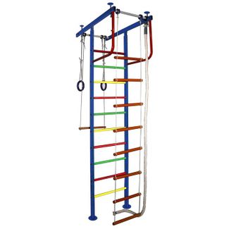 Детский спортивный комплекс Вертикаль № 2.1 С широкой металлической шведской стенкой.Комплектация: металлическая шведская стенка, два "Г"-образных турника, канат, кольца гимнастические, трапеция.Белый цвет перекладин, шириной: 600 мм.Устанавливается в распор между полом и потолком (2.5-3.0 м).Нагрузка на один элемент конструкции: 90 кг. None