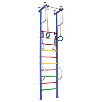 Детский спортивный комплекс Вертикаль № 3Комплектация: металлическая шведская стенка, кольца гимнастические, резиновые эспандеры, два "U"-образных упора, два "Г"-образных турника.Ширина перекладин шведской стенки: 450 мм.Устанавливается в распор между полом и потолком (2.5-3.0 м).Нагрузка на один элемент конструкции: 90 кг. None
