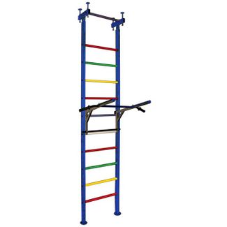 Детский спортивный комплекс Вертикаль № 7+ТБ Комплектация: металлическая шведская стенка, турник с брусьями навесной переставляемый по высоте. Резиновые ручки, регулировка ширины.Ширина перекладин шведской стенки: 450 мм.Устанавливается в распор между полом и потолком (2.5-3.0 м).Турник 1100 мм.Нагрузка на турник: до 120 кг. None