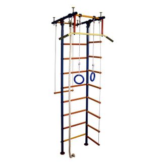 Детский спортивный комплекс Вертикаль Юнга № 2.1д Комплектация: деревянные перекладины диаметром 28 мм, турник с широким хватом, изопреновые ручки, канат, кольца гимнастические, трапеция.Ширина перекладин шведской стенки: 450 мм.Устанавливается в распор между полом и потолком (2.35-3.0 м).Нагрузка на один элемент конструкции: 90 кг. None