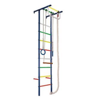Детский спортивный комплекс Вертикаль Юнга № 3c Комплектация: цветные перекладины, турник с узким хватом, металлическая шведская стенка, канат, кольца гимнастические, трапеция.Ширина перекладин шведской стенки: 450 мм.Устанавливается креплением к стене. Высота: 2.35 м.Нагрузка на один элемент конструкции: 90 кг. None