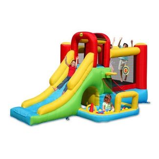 Надувной батут с горкой Happy Hop Приключение, 9160Размер: 400х275х200 смВысота основания батута: 40 cмРазмеры прыжковой поверхности: 158x150 cмРазмеры горки: 256x87 cмДопустимая нагрузка: 181 кг. None