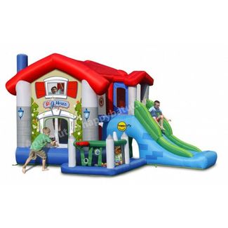 Надувной батут с горкой Happy Hop В гостях у сказки, 9515 Размер: 455x330x265 смВысота основания батута: 40 смРазмеры прыжковой поверхности: 185x185 смРазмеры горки: 164x87 смДопустимая нагрузка: 181 кг None