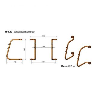 Стойка для штанги V-Sport MF1.13 Дополнительный модульДлина - 718 ммШирина - 1230 ммВысота - 945 ммВес - 19,5 кг None