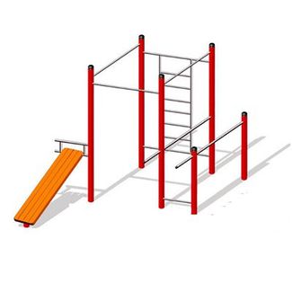 W-3.1 Площадка для воркаута, Hercules Включает в себя:- Скамья для пресса (35 градусов)- 1 шт.- Турник (h перекладины 2300мм)- 1 шт.- Турник (h перекладины 2200мм)- 2 шт.- Параллельные брусья - 1 шт.- Шведская стенка- 1 шт. None