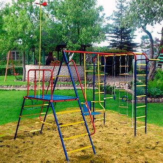 ДСКПионер-Морячок дачный Крепление: цементируются «стаканы, в которыеустанавливаются стойки ДСК Высота дачного комплекса: 2,20 (3,15) м Занимаемая площадь дачного комплекса: 3,00 х 2,30 м Допустимая нагрузка дачного комплекса: 100 кг Комплектация дачного комплекса: турник, канат, кольца,качели Масса комплекса: 97,0 кг None
