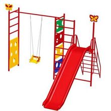 Игровая площадка Монголия, Самсон Внешние размеры (длина х ширина х высота): 3,2 х 2,5 х 2,4 мОбщий вес: 115 кгДлина горки: 2,5 мВ игровую площадку входят: скалодром с канатом; качели; кольца; мягкие перила (1шт.); желтые пластиковые поручни (2 шт.); горка None
