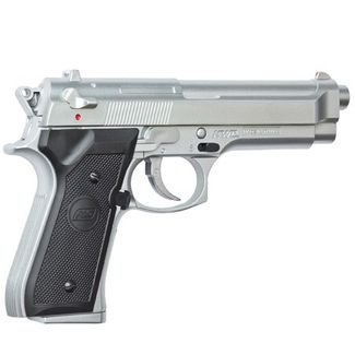 Модель пистолета ASG M92FS Хром (14098)Калибр, мм: 6 ммСкорость выстрела, м/с: 67 м/сЕмкость магазина: 13 шариковВес (кг): 400 грРазмер: общая длина: 219 мм длина ствола: 100 ммИсточник энергии: пружинаМощность: 0,4 Дж None