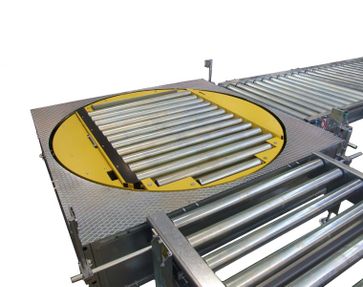Устройства поворота поддона на 90° без смены передней стороны продвижения. Доступны версии с роликовыми транспортерами или с цепными транспортерами.Вращение шарнирного конвейера на столе позволяет сохранять переднюю часть подачи продукта. Поворотный роликовый стол:Доступна версия с картером или без картера, которая должна использоваться также вместо центрального машинного конвейера, чтобы выполнять разгрузку поддонов ортогонально по отношению к направлению ввода, сохраняя при этом... None
