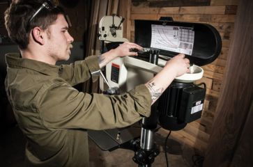 ОСОБЕННОСТИ: Регулируемый ограничитель глубины сверления Контроль глубины сверления по лимбу Лазерный указатель оси сверления LED-подсветка рабочей области 16-ступенчатая регулировка скорости вращения шпинделя переустановкой ремней Рабочий стол из чугунного литья Регулировка высоты установки рабочего стола при помощи вращающейся рукоятки Регулировка наклона рабочего стола на угол до 90° Поворотный рабочий стол Два Т-образных паза в столе Jet JDP-17 — сверлильный... None