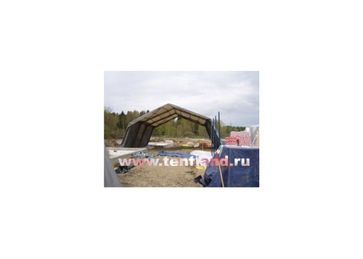 Быстросборные тентовые укрытия могут быть использованы в качестве временных и постоянных сооружений под различные цели: строительные укрытия от непогоды, мобильные склады и терминалы, производственные цеха, ангары, укрытия для техники. Использование таких сооружений позволяет: значительно сократить сроки и стоимость монтажа; уменьшить энергозатраты на внутреннее освещение; минимизировать затраты на фундаментные работы; легко демонтировать, перевезти и смонтировать сооружение на другом месте. Технические характеристики конструкций рассчитаны на работу при темп-х от –50 до +70 С, снеговой нагр. 2,5 кН /м2 и выше; макс. ветровой нагр. 1,5кН/м2. Стальной каркас покрыт полимерной краской с термообработкой. Тент ПВХ может иметь пропитку против горения и гниения. Гарантия на каркас – 40 лет, тент – 15 лет