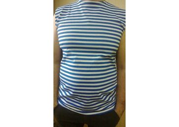Майка - тельняшка, прямой покрой, плечо широкое. Ткань кулирка, не линяет и не даёт усадки после стирки.
