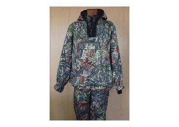 Костюм противоэнцефалитный: брюки на резинке + куртка. Ткань смесовая твил. Куртка анорак, рукава на резинке, скрытый манжет. На груди карман с клапаном на 2-х пуговицах. С капюшоном, с противомоскитной сеткой. Брюки внизу на резинке, с усилением на коленях, с двумя накладными карманами с клапанами, застегивающимися на 2 пуговицы.