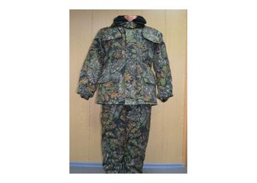 Костюм зимний: куртка + полукомбинезон. Утеплитель - синтепон 300. Куртка с четырьмя накладными карманами с клапанами на липе: два внизу и два на груди. Застежка - молния с ветрозащитным клапаном на липе. Рукав на резинке. Кулиска на поясе. Меховой воротник. Отстегивающийся капюшон на пуговицах. Полукомбинезон на молнии, На груди - карман с клапаном и два кармана по бокам.