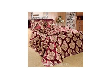 Покрывало с бархатной фактурой выполненной в постельных тонах и украшенной русскими узорами будет прекрасно дополнять ваш интерьер. Покрывало из высококачественного трехслойного сатинового-хлопкового полотна. Такой метод производства полотна значительно продлевает срок службы изделия и делает его светонепроницаемым + добавляет ему изюминку благодаря художественному узору. Размер: 240х260; 2 наволочки 50х50. Состав: светонепроницаемая ткань с сатиново-хлопковым переплетением. Ткань: "Блэк аут".