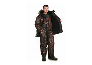 Куртка утепленная с отстегивающимся капюшоном с опушкой, с застежкой на «молнию», с внутренним ветрозащитным клапаном, двумя верхними и двумя нижними карманами с потайными клапанами. Ширина куртки регулируется по талии. Манжет рукава на резинке и регулируется контактной лентой. Утепленный полукомбинезон с регулируемыми бретелями с застежкой на молнию, с нагрудными накладными и боковыми врезными карманами, эластичной тесьмой по талии. Ширина низа полукомбинезона регулируется молнией. Утеплитель: термофайбер.