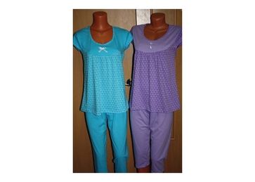 Пижама трикотажная из кулирки с коротким рукавом. Бриджи ниже колена. Модель расчитана на рост 164-170 см. р.46-60 Состав ткани: хлопок - 100%.