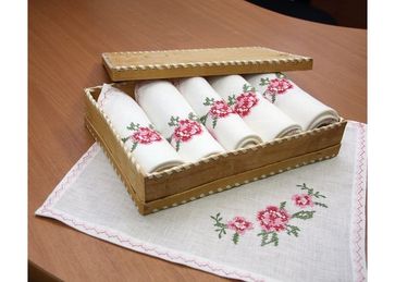 Вес товара: 0.5 kg. Салфетки вышитые "крестиком", в наборе по 6 шт. Размеры 32 х 32, 45 х 45. Состав: лен. Рис. 43-7. Упаковка может быть из пласт. коробки или из натуральной бересты.