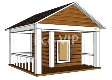 Данная модель отличается от всех остальных будок необычной планировкой – она имеет небольшую террасу, защищённую от дождя и солнца крышей. Предназначена для уличного использования. На такой террасе также можно разместить кормушку и поилку для собаки. Модель имеет утепление. Цвет: палисандр, тик, сосна. Размеры: малый, средний, большой. Стоимость зависит от размера изделия и усложняющих элементов.