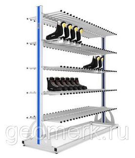 Спортивная обувь комфортно хранится на стеллажах для хранения коньков моделей VILDIS SP-203. Стеллажы для хранения коньков оснащены простой и надежной системой фиксации. Такого рода стеллажи для хранения спортивной обуви и споривного инвентаря повсеместно используют в пунктах проката, в спорткомплексах, магазинах спортивных товаров.