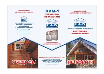- Огнезащитный состав нового поколения ВИМ-1 по выгодной цене 94 р. руб.;