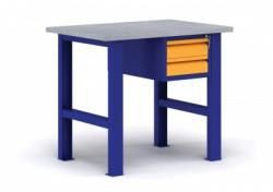 Верстак слесарный металлический ВП-Э. Габариты (ВхШхГ): 860х1000х685мм. Столешница выполнена из МДФ-профиля толщиной 28мм, покрыта оцинкованным листом. Максимально допустимая равномерно распределенная нагрузка 300кг. Две металлические верстачные опоры, покрытие полимерно-поршковой краской синего цвета RAL 5002, предназначены для крепления к ним столешницы. Подвесной ящик с двумя выдвижными ящиками крепится под столешницу, выдерживает нагрузку до 30кг. Покрытие полимерно-порошквое, цвета синий RAL 5002 и желтый RAL 1003. Верстак комплектуется крепежом, подробной инструкцией по сборке. Верстак дополнительно может комплектоваться перфорированным экраном соответствующего размера, полочками и держателями для инструментов, набором крючков. None
